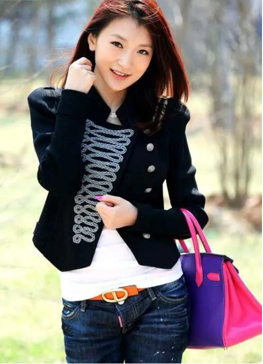 她有着一张精致的小脸,还有着一对翘臀。