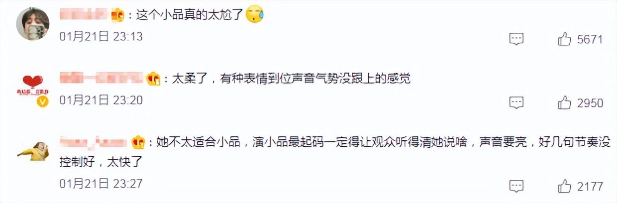 观众对春晚最期待的,往往就是语言类节目,小品《上热搜啦》评价并没有想象中好。由于秦岚嗓子原因,也受到“不好看”大军波及,秦岚这才不得已发文回应表示歉意。